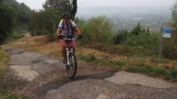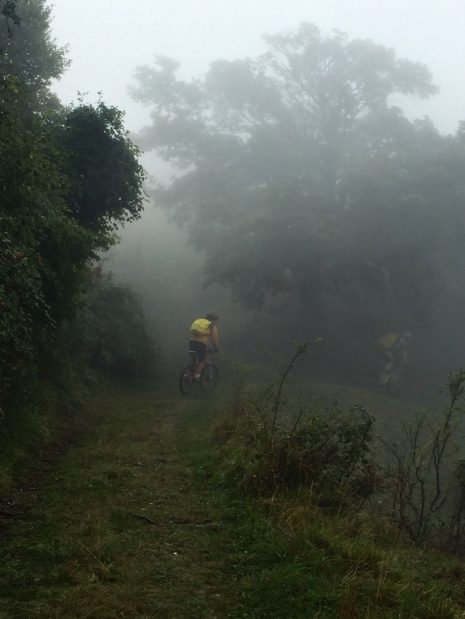 Er selbst ist die Strecke so noch nie gefahren. Also eine kleine Erkundungstour für uns. Mit teilweise nicht so erwarteten Herausforderungen. (z.B. 35 % Anstiege, die schon zum Schieben fast zu steil sind, 1300 hm in einer Abfahrt mit 27 Kehren auf nur 6 Kilometer)