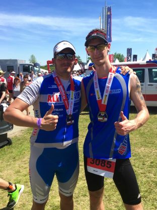 Am Sonntag ging der Spaß dann weiter. Ich hab für meinem Cousin den Radteil beim Ironman 70.3 übernommen. Er konnte verletzungsbedingt nicht allein antreten. Die Radstrecke über die Autobahn, Wachau und den Dunkelsteinerwald ist mehr als genial. Die Bedingungen in diesem Jahr waren perfekt. So hab ich auch eine ordentliche Zeit auf den Asphalt geknallt. Ich war nach gut 2 Stunden 46 wieder zurück in St. Pölten. Knapp 33 km/h Schnitt bei 1000 Höhenmeter. Vielleicht wäre noch mehr gegangen, aber schwer die Kräfte richtig ein zu einteilen.