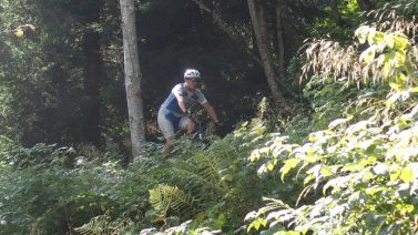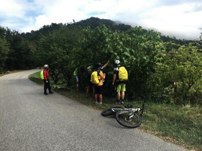 Er selbst ist die Strecke so noch nie gefahren. Also eine kleine Erkundungstour für uns. Mit teilweise nicht so erwarteten Herausforderungen. (z.B. 35 % Anstiege, die schon zum Schieben fast zu steil sind, 1300 hm in einer Abfahrt mit 27 Kehren auf nur 6 Kilometer)
